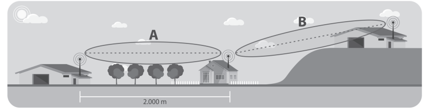 Para garantizar una señal fuerte y estable, las antenas de transmisión y recepción de i-Allerta deben instalarse en línea de visión directa, sin obstáculos entre ellas, como desniveles del terreno, vegetación o edificios. Cualquier interferencia puede poner en peligro la calidad de la comunicación. Además, la distancia entre las antenas no debe superar los 2.000 metros.