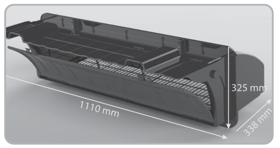 El inlet mide 1110 mm de largo por 338 mm de profundidad y 325 mm de alto.